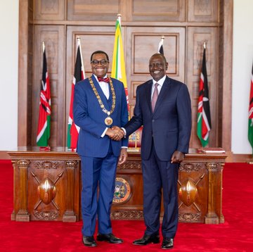 Posting images from the ceremony on X.com, the State House announcement revealed that the accolade acknowledges Adesina's guidance of the bank and his efforts in supporting Kenya's progress.